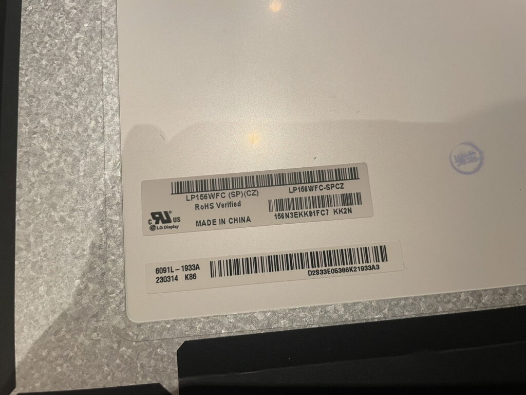 交換後のパネル型番はLP156WFC(SP)(CZ)、LP156WFC-SPCZ。