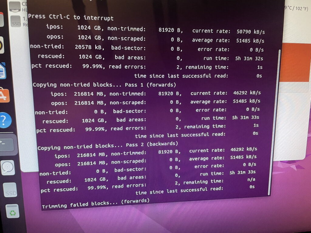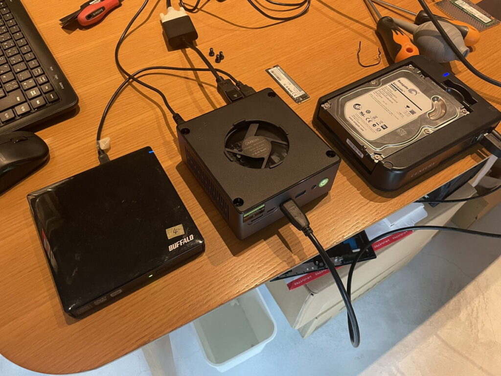 これをさらに新品のSSDにクローンしてるのがこの状態。ddrescueをHDDでするんじゃなかった。そもそもハードウェアクローンが出来てたらここまで遠回りはしなかったのに。